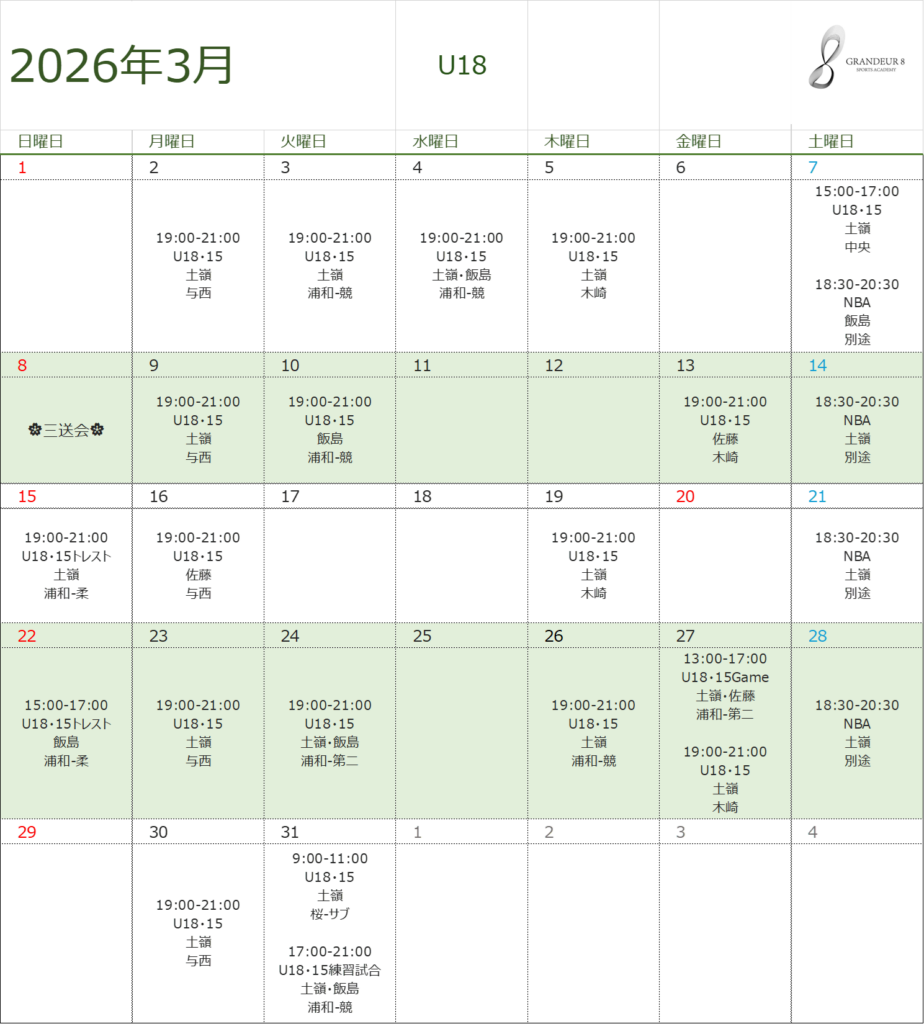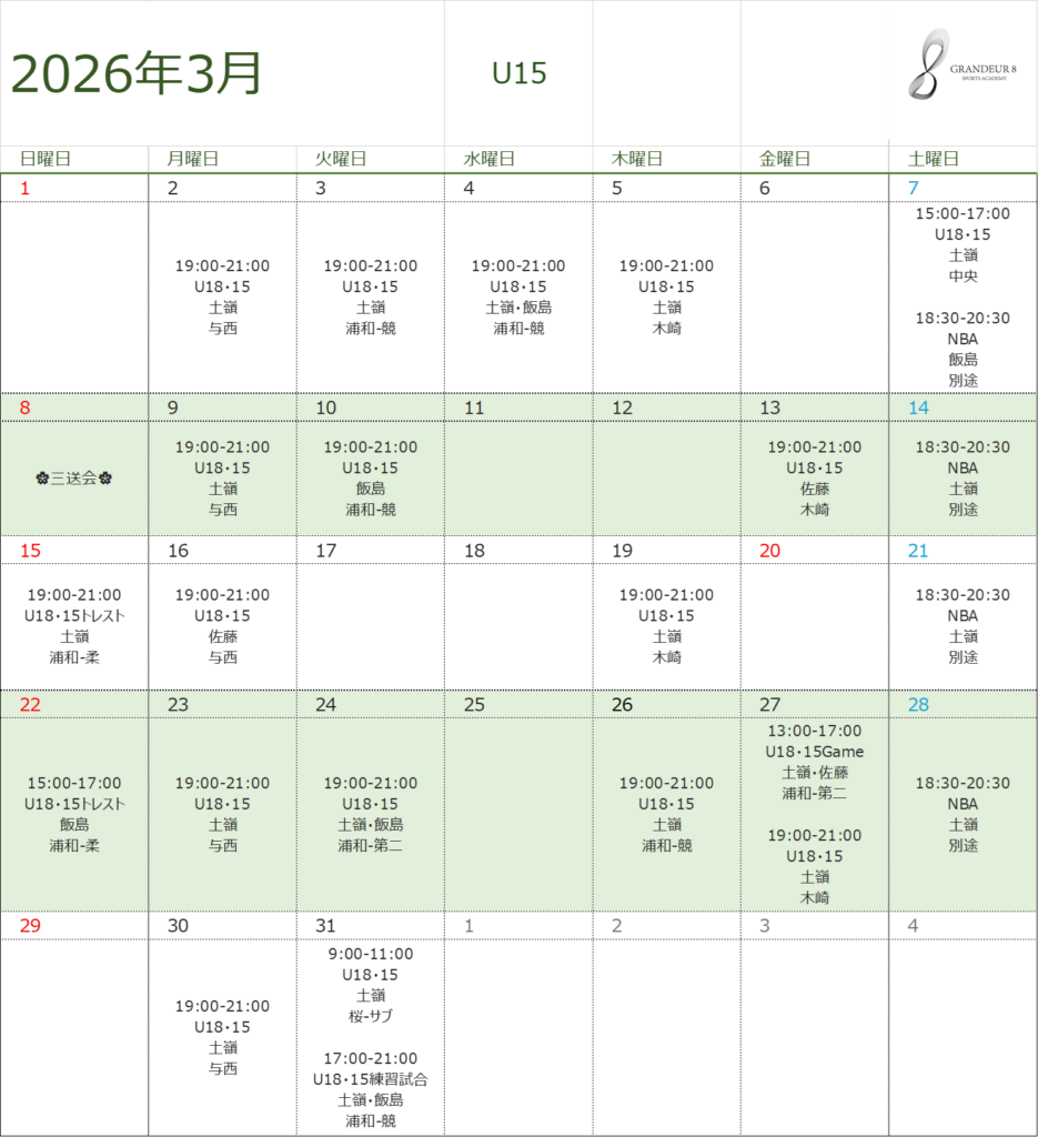 ※土日は練習試合が入る可能性があります。