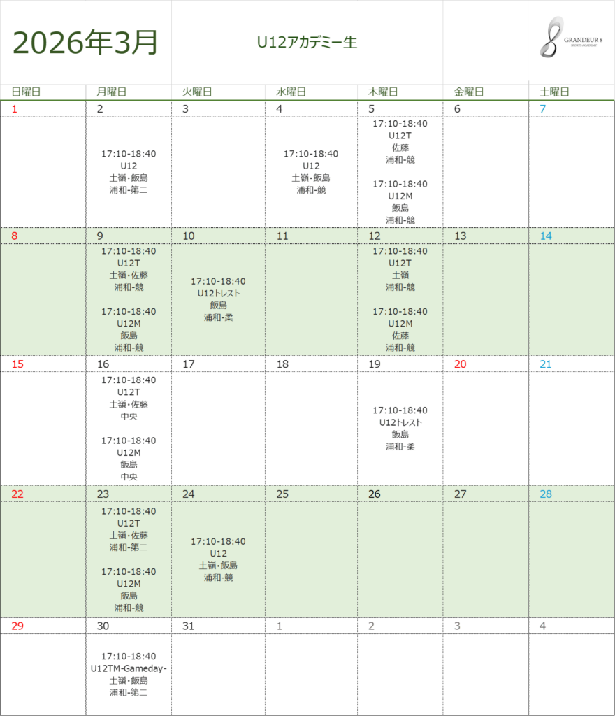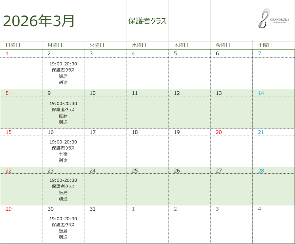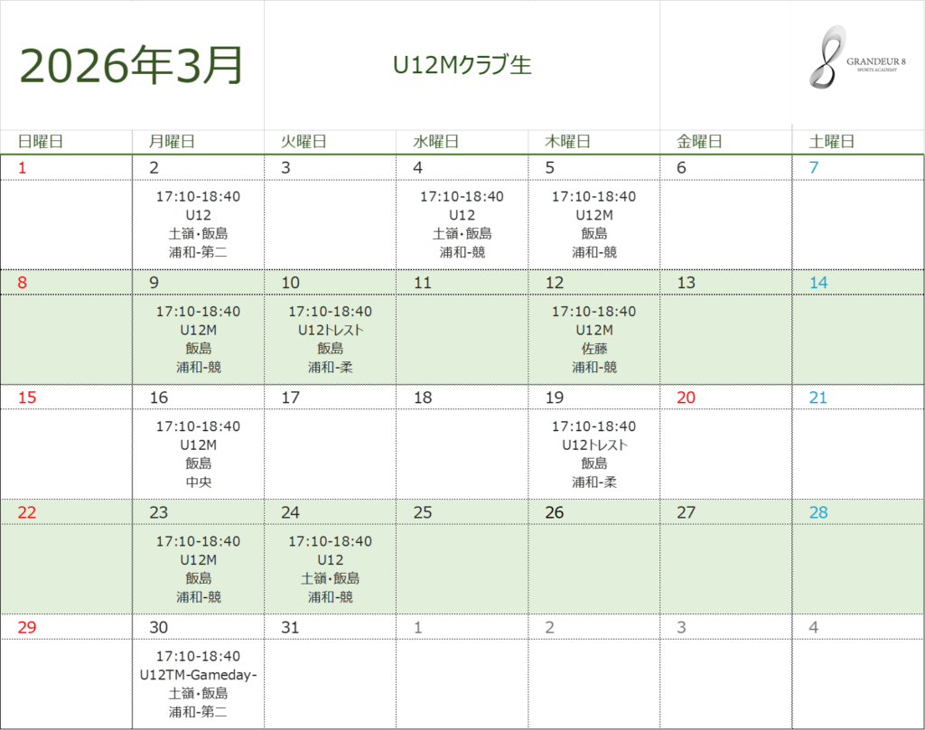 諸事情により、担当コーチや練習日程が変更になる場合があります。クラブ生は、TeamHubの情報が最新となりますのでご確認をお願いいたします。