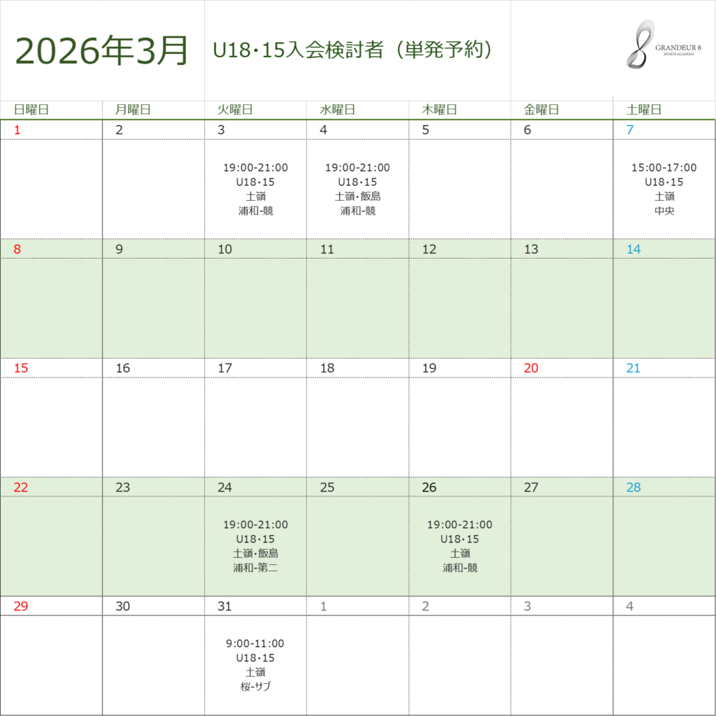 U18・15入会検討者(単発予約)