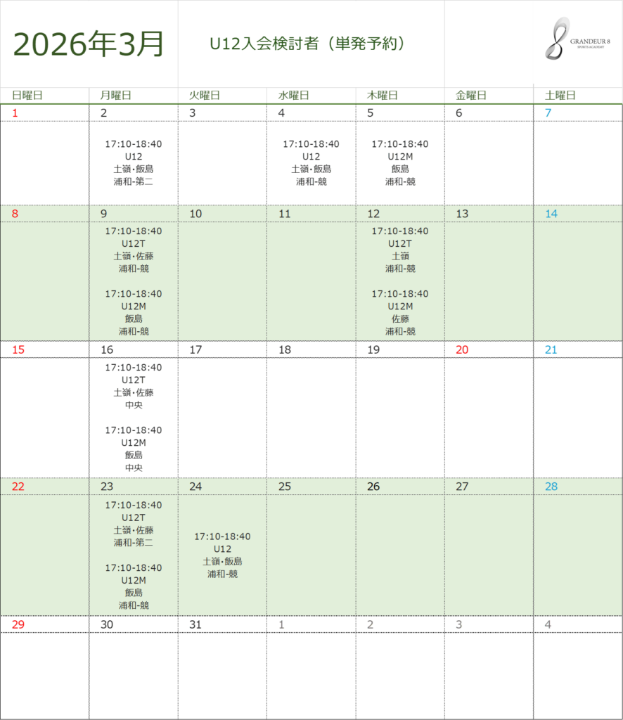 U12入会検討者(単発予約)