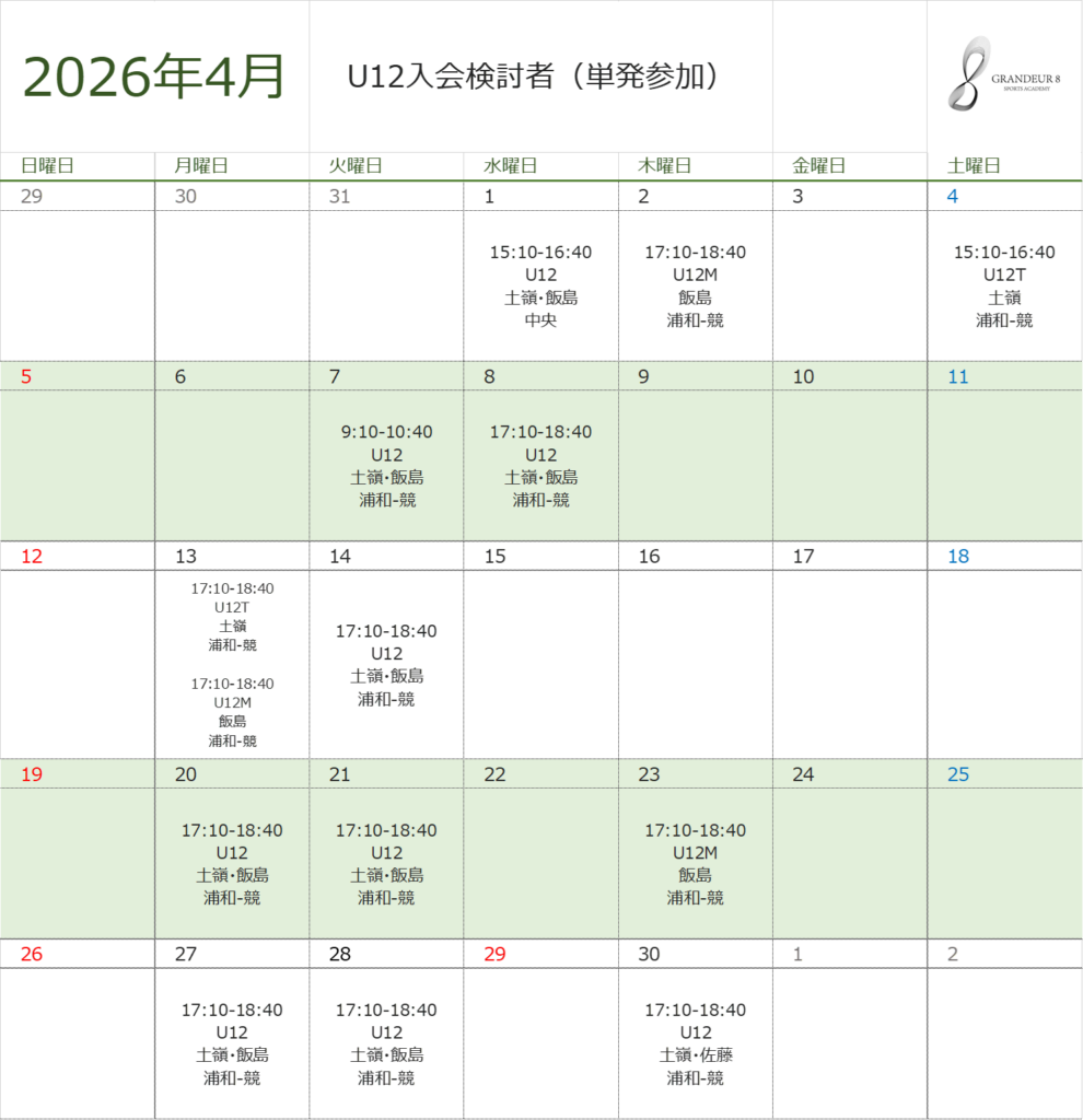 U12入会検討者(単発予約)