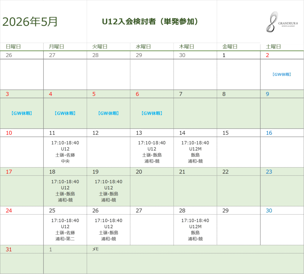 諸事情により、担当コーチや練習日程が変更になる場合があります。クラブ生は、TeamHubの情報が最新となりますのでご確認をお願いいたします。